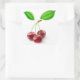 Pegatina Cuadrada tres cerezas dulces con hojas