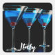 Pegatina Cuadrada Tres cócteles azules con cereza en negro