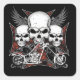 Pegatina Cuadrada Tres cráneo con motocicleta de helicóptero rojo