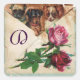 PEGATINA CUADRADA TRES DOGGIES CON ROSAS MONOGRAMA