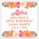 Pegatina Cuadrada Tropical Aloha Luau Floral Birthday Party