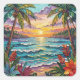 Pegatina Cuadrada Tropical Paradise | Coastal Beach Scene Impasto