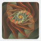 Derechos reservados © 2009, Susan Wallace. El diseño abstracto en tonos naranja y verde da la impresión de una flor tropical en la selva. Tarjetas en blanco, sellos postales, pegatinas redondos y en forma de corazón disponibles.