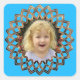 ¡Añade una foto de ti mismo o de un ser querido, incluso de un mascota! Un regalo encantador. Una imagen en un marco dorado sobre un fondo azul.