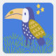 Pegatina Cuadrada Tucán lindo con estrellas amarillas sobre fondo az