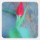Pegatina Cuadrada Tulipán rojo sobre pizarra gris azul