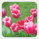 Pegatina Cuadrada Tulipanes escarlata en el jardín