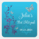 Pegatina Cuadrada Turquesa, Floral Púrpura, Mariposas Bat Mitzvah