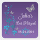 Pegatina Cuadrada Turquesa, Morado Floral, Mariposas Bat Mitzvah