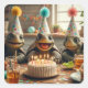Pegatina Cuadrada Turtles celebrating birthday with cake and hats