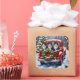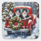 Pegatina Cuadrada Tuxedo Cat Christmas Red Truck Holiday