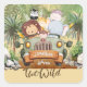 Pegatina Cuadrada Two Wild Safari Animals Driving Car 2nd Birthday