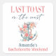 ¡Prepárate para crear recuerdos inolvidables con la pegatina cuadrada del fin de semana de despedida de soltera Last Toast Coastal! Imagina esto: una playa bronceada por el sol, vibraciones tropicales y tus amigas más cercanas a tu lado. Es hora de celebrar el amor, la amistad y a la futura novia con estilo.