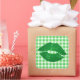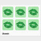 Una manera divertida de añadir algo verde este día de San Patricio con este pegatina genial que presenta un par gigante de labios verdes sobre un fondo verde de gingham. Añadir un texto para personalizar este diseño.