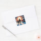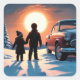 Pegatina Cuadrada Un chica y un niño viendo la puesta de sol en invi