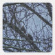 Fotografía de un par de águilas calvas adultas colgadas en una rama de árbol durante el invierno. Las ramas de los árboles han perdido sus hojas y se han cubierto de nieve. El cielo es azul claro. Derechos reservados ©2021 Kimberly J Tilley.