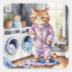 Pegatina Cuadrada Un gato gracioso en pijamas lavando ropa