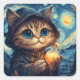 AI generó arte de un gato mágico en la noche estrellada al estilo de Van Gogh