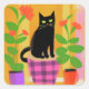 Pegatina Cuadrada Un Gato Negro Con Sillones Púrpura Rosa