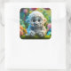 Pegatina Cuadrada Un lindo bebé Yeti hecho de hilo