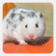 Hámster sirio poliblanco salpicado de blanco, piel blanca con pequeñas manchas negras, estos lindos mascotas de la casa también llamados Hámster dálmata. Foto tomada por Katho Menden, este pegatina es una idea de regalo encantadora para los amantes de los hamsters y mascotas.