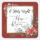 La pegatina navideña representa un elegante diseño de acuarela floral, con un marco dorado festivo adornado con flores de poinsettia roja y vegetación sobre un fondo rojo y blanco. Presenta un verso de los queridos Navidades Carol, O Holy Night, "Una emoción de esperanza que un mundo cansado se regocija".
