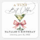 Pegatina Cuadrada Un poco más viejo Martini lazo rosa cumpleaños
