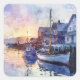 Una acuarela de un puerto muy tranquilo con barcos y casas