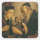 Pegatina Cuadrada Un rabino atando las Phylacterias al brazo de un n