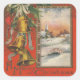 Hermoso Ilustracion de una Vintage A Merry Christmas with Bells, Holly y una nevada escena invernal de un pequeño pegatina de la plaza del pueblo. Encontrará más elementos coincidentes en la tienda ingeinc.com.