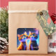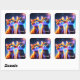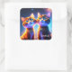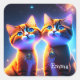 Pegatina Cuadrada Una pareja de gatos bajo el cielo estrellado -