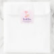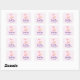 El favor del partido les agradece a los pegatinas con un adorable ilustracion de un pequeño conejito marrón que lleva una pequeña corona dorada. Llevado por globos en una manta rosa de corazón.