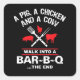 Pegatina Cuadrada Una Vaca De Pollo De Cerdo Camina A Un Bar Funny B