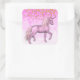 Pegatina Cuadrada Unicornio de Nubes Rosadas y Estrellas Doradas