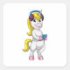 Pegatina Cuadrada Unicornio en Escucha Música con Auriculares