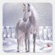 Pegatina Cuadrada Unicornio en la Nieve