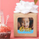 Texto festivo del shimmer dorado ONE {no cambiable} Personalizar con el nombre y la foto del bebé para celebrar el gran UNMaravilloso Día de tu bebé! El color de fondo {Blue} también puede cambiarse ©Señales de Fiesta de Miss Sassy