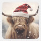 Pegatina Cuadrada Vaca con sombrero de Santa en vacaciones de Navida