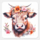 Pegatina Cuadrada Vaca Highland con flores rosas