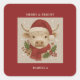 Pegatina Cuadrada Vaca rústica de montaña con Santa Hat