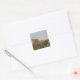 Pegatina Cuadrada Vacas lecheras Holstein afuera del granero al aman