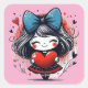 Pegatina Cuadrada Valentine Girl Art 3 Inch Sticker – Kawaii Love