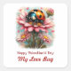 Pegatina Cuadrada Valentine Love Bug on Blossoms Rose