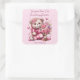 Pegatina Cuadrada Valentine Love Rosa Bear