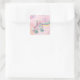 Pegatina Cuadrada Vamos a patinar el arco iris retro Groovy Pink