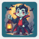 Pegatina Cuadrada Vampiro lindo con Halloween con linterna Kawaii