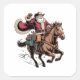 Pegatina Cuadrada Vaquero Papá Noel Montando A Navidades De Caballos
