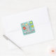 Pegatina Cuadrada Vehículos de pitido de hongos de primer cumpleaños