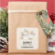 Pegatinas de velas o jabones con lujosas calabazas blancas acuarelas con acentos de falso purpurina de oro. Rodeado de hojas verdes y flores silvestres rosas.