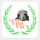 Antiguo casco militar romano hecho de cobre metalizado. Texto Veni, Vidi, Vici. El dibujo de un laurel verde estaba por ahí. Productos y regalos de formato cuadrado. Pegatina cuadrado